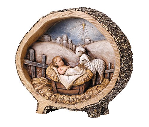 Avalon Gallery Woodcut Figurine, Baby Jesus with Lambs