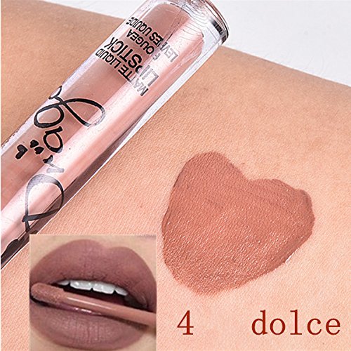 -. Feature : [Fashion style]: Matte and metallic style, you can choose different color follow your mood. / [Features]: Waterproof/Water-Resistant, Long Lasting Maintain, Not stick on Cup. / [Taste]: Light chocolate taste lipstick,naturally healthy. Choosing carefully if you don't like the taste / [Safety]: More than one million people used, no allergies. / [Note]: 1.It can be a little sticky, until it dries to wait so a few seconds,a bit of powder will help that too. 2.Effect of matte velvet,your lips will be a little dry,if you want moisturizing,use a lip balm before. 3.Effect for long lasting and waterproof,maybe a little hard to take off,please remove with lip cleansing oil
