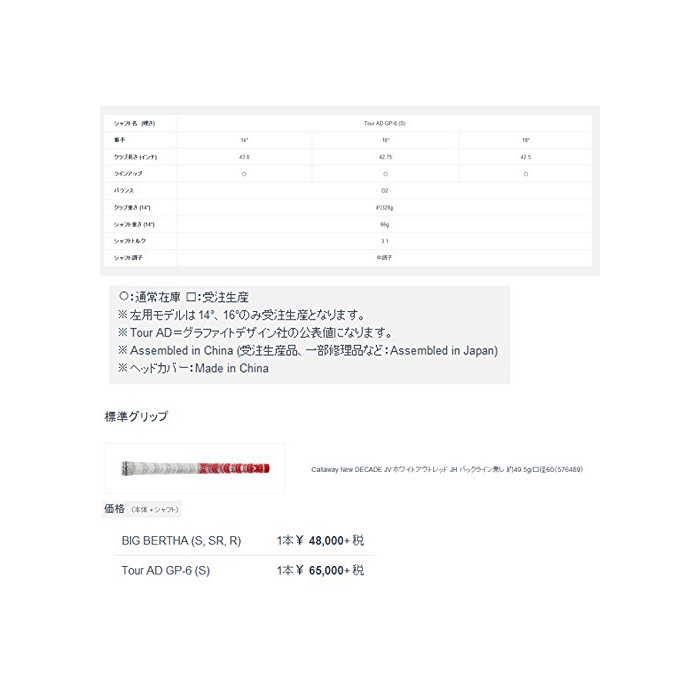 원본상품명: キャロウェイ ビッグ バサ アルファ 816 (BIG BERTHA ALPHA)フェアウェイウッド Tour AD GP-6 Sシャフト