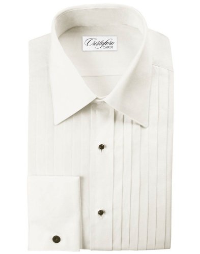 Binding : Apparel Product Description Ivory, 1/2" pleats, 100% cotton, laydown collar, french cuffs, comfort collar, increased stitching on all seams for increased quality. Also features fly front at bottom of shirt to hide the buttons giving a more elegant appearance, reverse back pleats for added comfort. Also comes with option of buttons or black-nickel studs on the front. 0