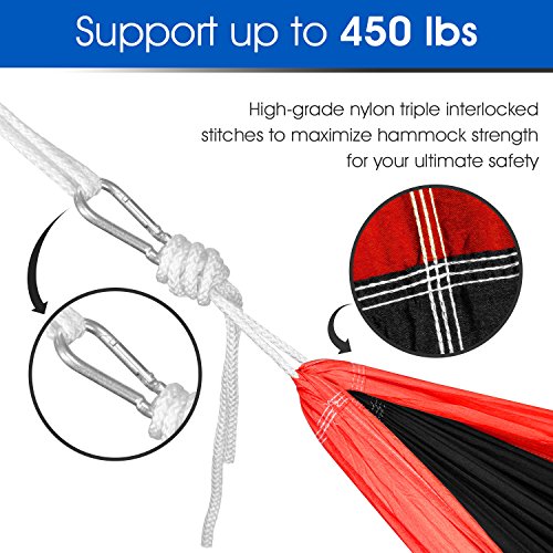 Yes4All Lightweight Camping Hammock with Carry Bag – Multi Color Available (Double) & Tree Strap (Optional)