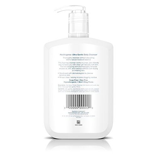 Neutrogena Ultra Gentle Daily Cleanser is Dermatologist developed for daily cleansing of sensitive skin, this cleanser uses skin-friendly technology to remove excess oil, dirt, and makeup while protecting skin's natural moisture barrier. This cleanser combines the superior cleansing of Neutrogena technology with the maximum gentleness of a sensitive skin cleanser. With patented technology, this effective yet gentle formula removes excess oil, dirt and even makeup while protecting skin's natural moisture barrier to leave it feeling soft—never too dry, never too tight. And unlike some other gentle or sensitive skin cleansers that can leave behind residue, Ultra Gentle rinses completely clean.Feature