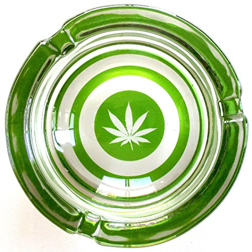 -. Title : Marijuana Weed Bullseye Round Glass Ashtray