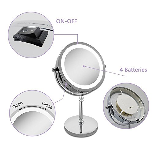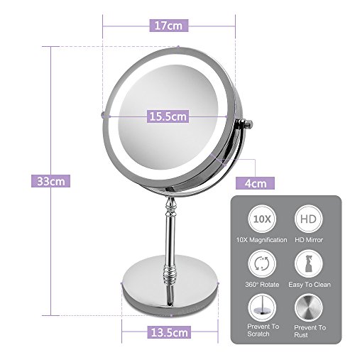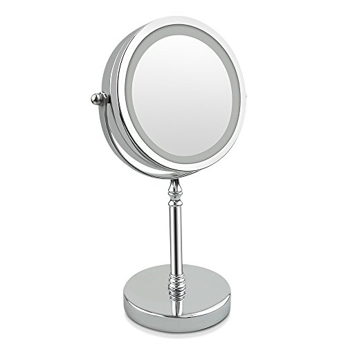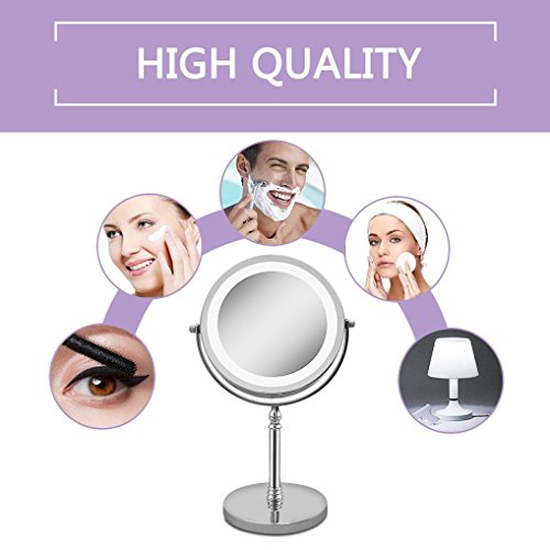 Magnifying Mirror, Tabletop Magnify 10x 7-Inch LED Makeup Mirror Double-Sided, Lighted 1x or 10x Magnification Mirror