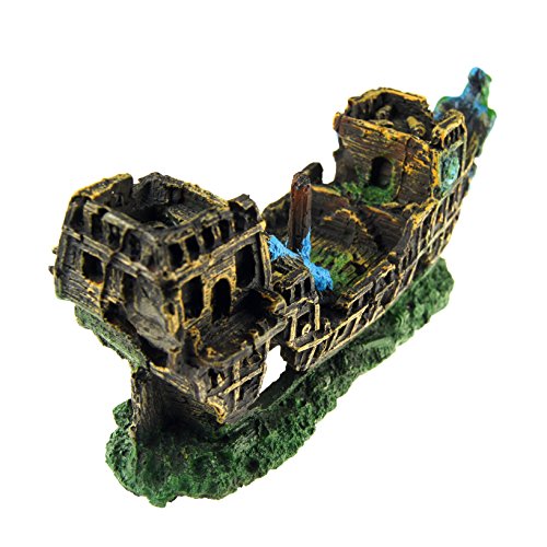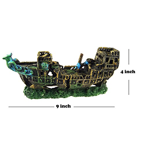 - Feature : The ship decoration resembles a real long-lost corroded one on seabed. / Add underwater adventures feel to your aquarium. / Decorate your aquarium all the time with minimum maintenance / Made of non-toxic resin. Safe for fish. / Item size: 9" long x 4" wide