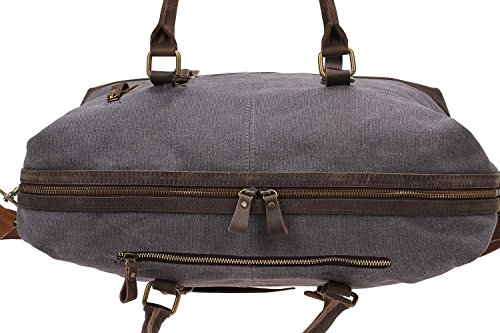Berchirly Oversized Canvas Leather Trim Travel Tote Duffel Shoulder Handbag Weekend Bag Outdoor Carryon Luggage (Upgraded Version) Gray