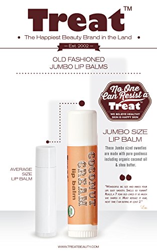 -. Binding : Health and Beauty -. Brand : Treat -. EAN : 0851656003071 -. Feature : If you are a fan of coconut you are going to eat up this organic jumbo flavored lip balm / Jumbo sized and jumbo nourishment: this lip balm is more than triple the size of a normal lip balm, it's super sized and super fun, you will love it / Usda certified organic: go ahead, taste it, treat lip balms are good enough to eat, well don't eat it but a little taste won't hurt / Made with pure organic coconut oil: coconut oil is the ultimate natural moisturizer and so good for chapped lips / 100 percent happiness guarantee: we'll make it right if you're not happy -. Label : Treat -. Manufacturer : Treat -. MPN : T125 -. NumberOfItems : 1 -. PackageQuantity : 1 -. PartNumber : T125 -. ProductGroup : Beauty -. ProductTypeName : BEAUTY -. PublicationDate : 2015-09-10 -. Publisher : Treat -. ReleaseDate : 2014-10-31 -. Size : 0.50 Ounce -. Studio : Treat -. Title : Treat Coconut Cream Organic Jumbo Lip Balm, 0.50 Ounce -. UPC : 851656003071
