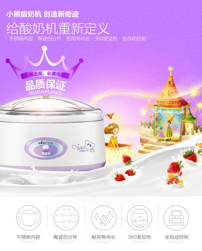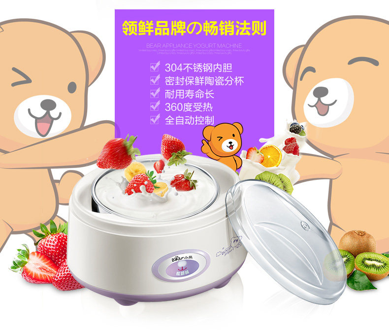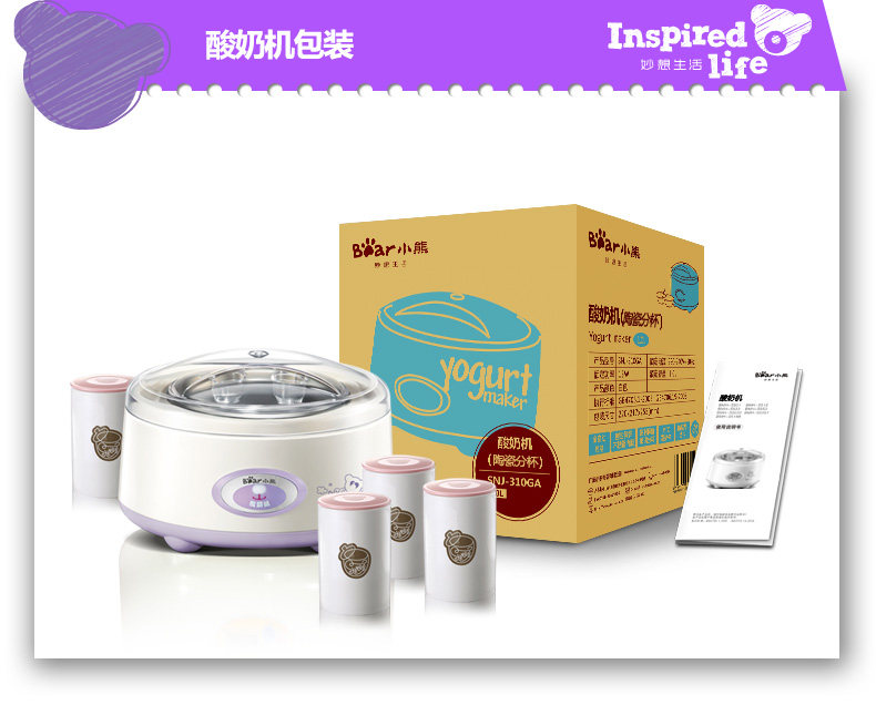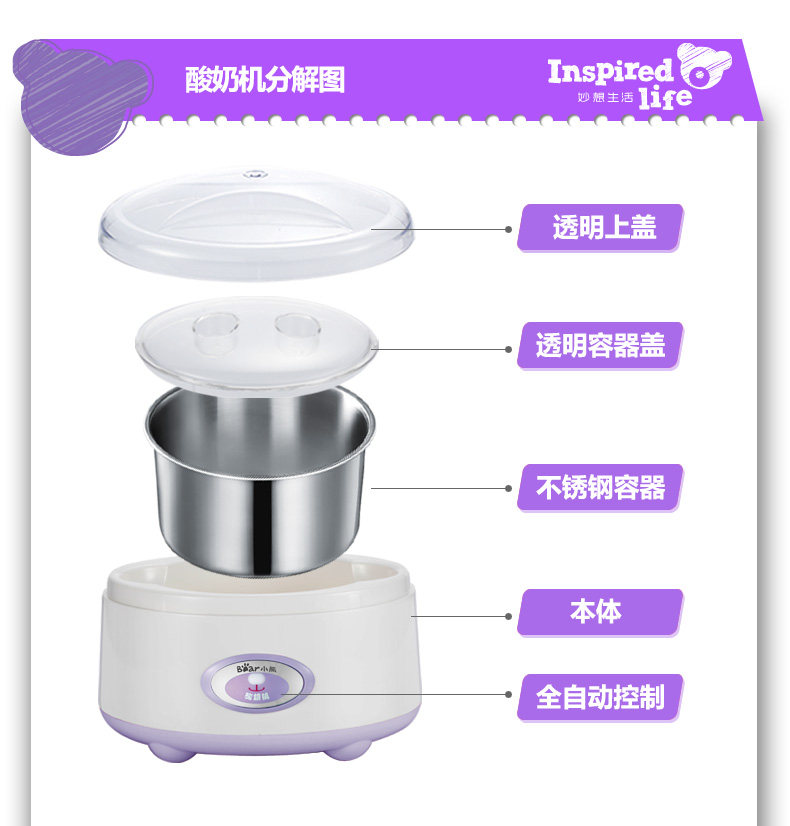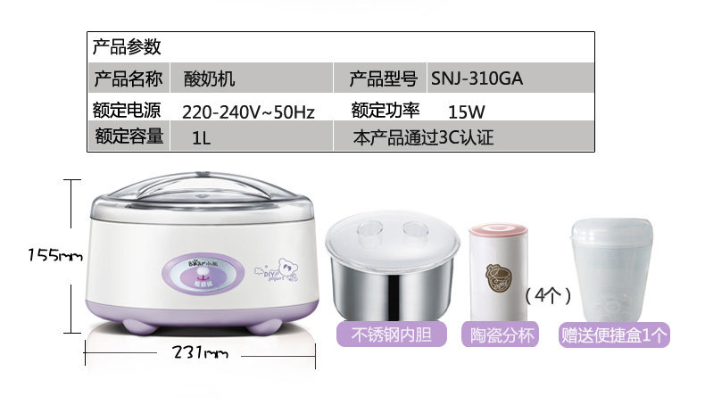 Bear/小熊 SNJ-310GA家用全自动不锈钢内胆 酸奶机陶瓷分杯正品