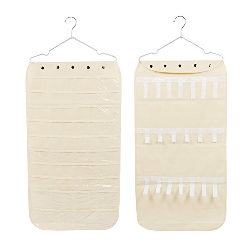XeaGiasy Hanging Jewelry Organizer Non-woven Closet Wall Bag Jewelry Holder Storage With Pockets 40 Pockets 20 Hooks (White)
