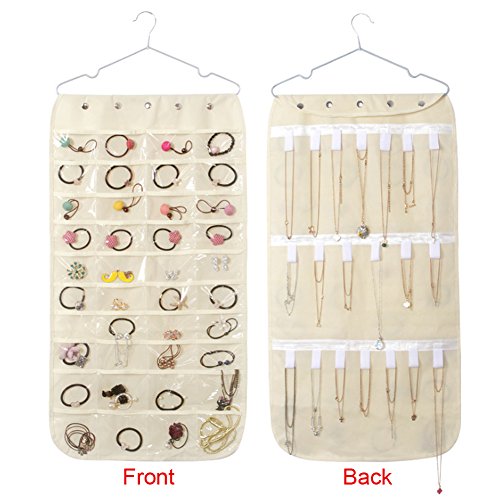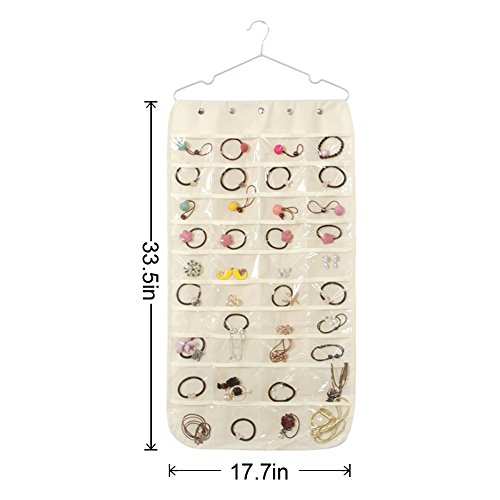 40 clear vinyl pockets and 20 hook and loop closures, perfect closet jewelry hanging organizer (Hanger is included)