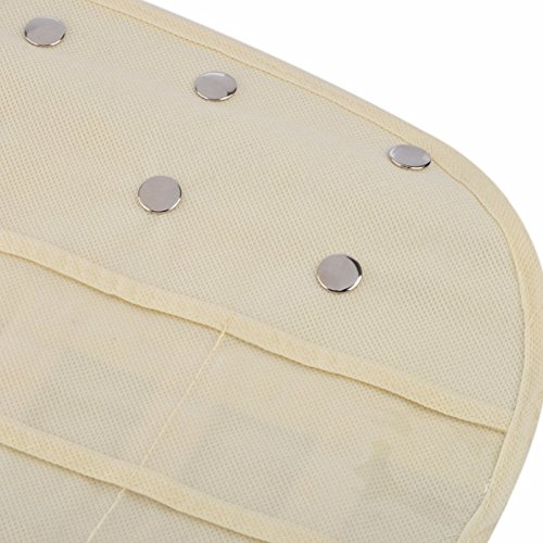 A sturdy metal hanger comes with the bag. The organizer can hang by itself from a closet rod for easy storage and quick access; or discreetly hides under a blazer or other clothing item and will appear to be just another hanger. It may also be hung over the door, doorknob, or a towel bar. The hanger button closures make it easy to open and close and it can be folded into a suitcase for travel.