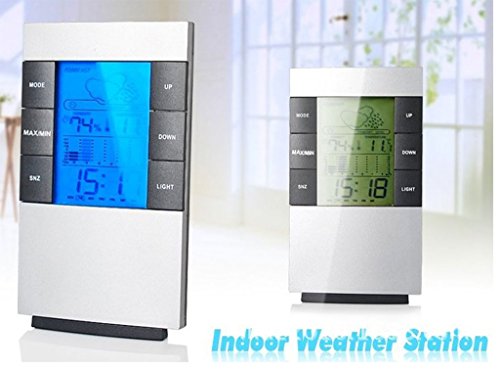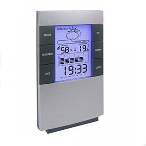 -. Feature : 時計表示機能付き:大型液晶画面に大きな文字で表示されるので見やすいです。遠くからでも確認しやすい大画面表示です。 / 温湿度機能付け:測定範囲:温度0~50度、湿度20%~99%温湿度精度、過去(リセットされるまで)の最高・最低温湿度を表示できます。 / 時刻表示機能付け:12時間/24時間表示があり、切替え可能です。日付も表示できます。 / 適用範囲: 卓上スタンド、壁掛け用フック穴と一つの使い分けができるのも便利です。リビング、寝室、子供部屋、書斎、キッチン、洗面所、ペットのケージなど、家中の色々な場所で活用できる。 / 天気予報機能:晴れ、半晴れ、曇り、雨(動作に必要な単四電池2本は付属しないので別途準備する必要がある。)