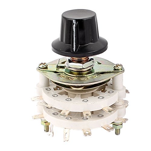-. Feature : Product Name: Rotary Switch; Country of Manufacture: CHINA; Material: Metal, Ceramic, Plastic / Net Weight: 73g; Package Content: 1 x Rotary Switch;1 x Plastic Cap; Model: KCT6*3 / Main Color: White,Silver Tone; Dimensions(Not IncludeTerminals): 42 x 53mm/1.7'x2.1'(D*H); Male Thread Diameter: 10mm/0.39' / D-Shape Shaft Diameter: 6mm / 0.24'; D-Shape Shaft Length: 10mm / 0.39' / Pin Number: 2 x 12; Contact Type: 6 Pole 3 Throw