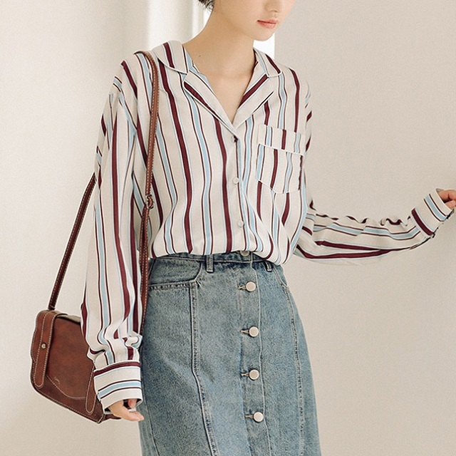 大人カラーでも甘すぎず、程よくコーデのアクセントになるミックスストライプのシャツです。