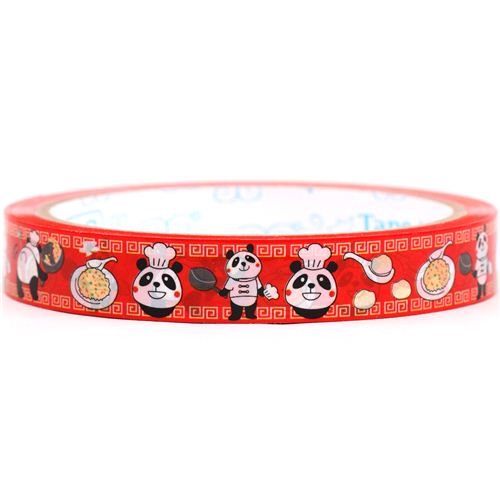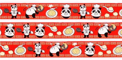 Product Descriptionred animal decorative adhesive tape with pandas as cooks, rice, dumplings pan0