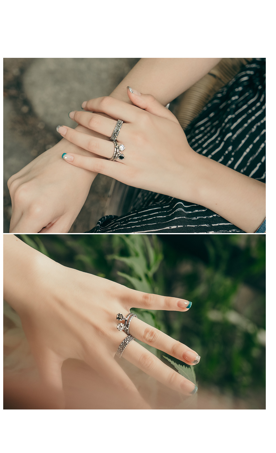 패션의 마무리로 빈티지한 느낌을 살리고 싶다면 앙코르 반지