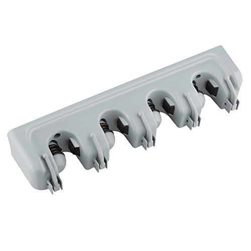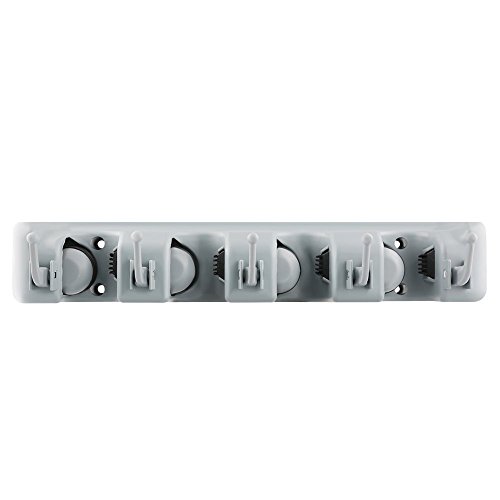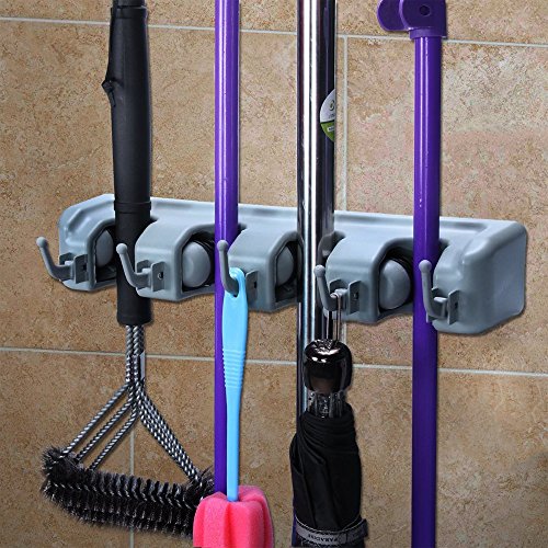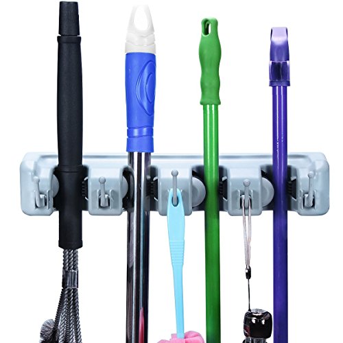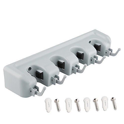SUNNZO Mop and Broom Wall Mounted Holder With 4 Slots and 5 Hooks for Garage,Garden and Kitchen etc