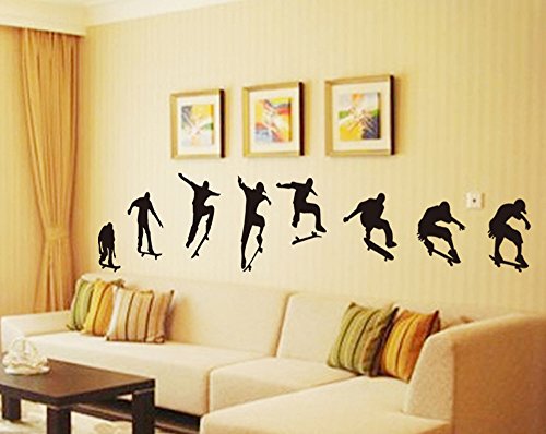 -. Brand : ufengke décor -. EAN : 0702646916928 -. Feature : Applies to any clean/dry/flat surface / Easy to apply, remove and reuse without leaving damage or residue / Comes in 1 sheet, sheet size:90cm x 60cm(35.4" x 23.6") / Recommend finished size:2.4m(W) x 0.5m(H), it can also be adjusted according to your preference -. Label : Ufingo -. Manufacturer : Ufingo -. Model : UT-WL0461 -. MPN : UF-WL0461 -. PartNumber : UF-WL0461 -. ProductGroup : Home -. ProductTypeName : HOME_FURNITURE_AND_DECOR -. Publisher : Ufingo -. Studio : Ufingo -. Title : ufengke® Fashion Silhouette of Skateboarding Wall Decals, Living Room Bedroom Removable Wall Stickers Murals -. UPC : 702646916928