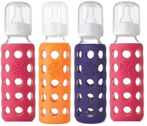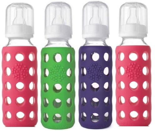 -. Binding : Baby Product -. Brand : Lifefactory -. Feature : Bright colored silicone sleeve (patent pending) helps to protect the bottle from breakage and provides a great gripping surface and tactile experience during feeding / Bottle and sleeve can be boiled or put in the dishwasher together. / Bisphenol-A (BPA), phthalate, and polyvinyl chloride (PVC) free / Silicone sleeve is non-toxic and free of plastics / Silicone nipple is non-toxic and latex-free -. Label : Lifefactory -. Manufacturer : Lifefactory -. ProductGroup : Baby Product -. ProductTypeName : BABY_PRODUCT -. Publisher : Lifefactory -. Studio : Lifefactory -. Title : Lifefactory Glass Baby Bottles 4 Pack (9 oz. in Girl Colors)