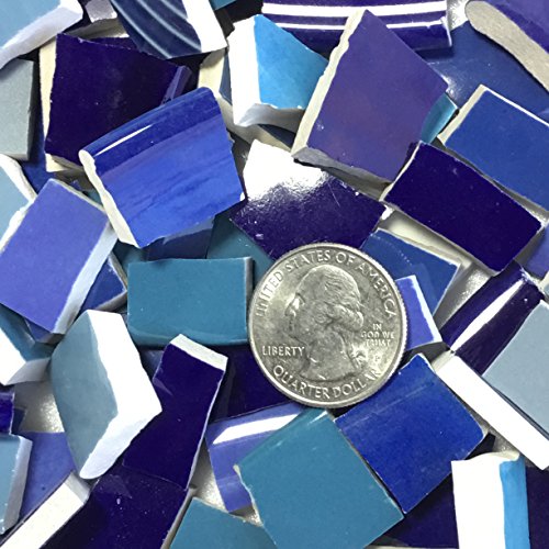 - You will receive 100+ tiles similar in size variation and color to those shown in photograph. Reflections may make some tiles in photograph look white but all tiles are shades of blue. Additional sets of similar tiles may be available. Click on J Pepper Art By Hand above.