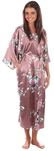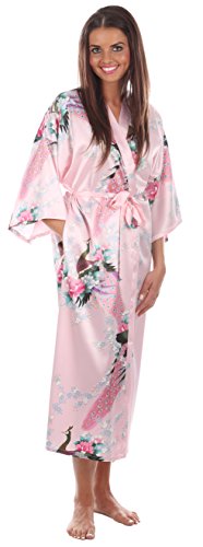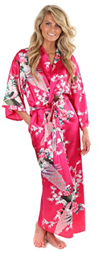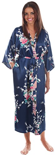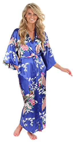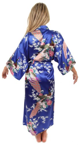 VEAMI Women's Kimono Robe, Peacock Design-AtlanticBlue-Medium, Long