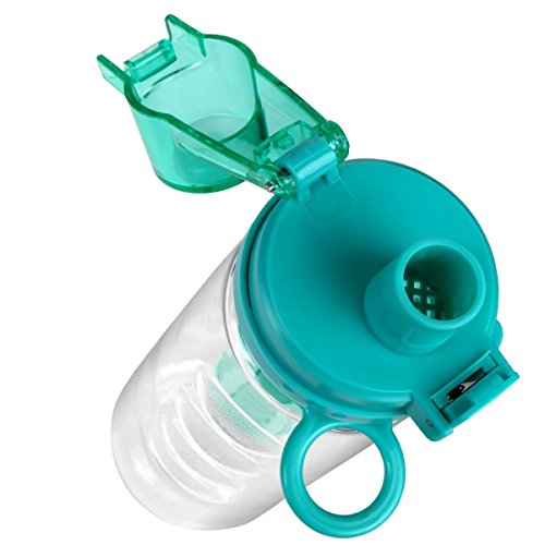 LEAK PROOF: Our locking lid ensures that not a single drop will leak like other infusers. The fruit-infuser flip top with reusable filter can be un-locked with one finger. Great for adults and kids - the cylinder is not too small and not too large.