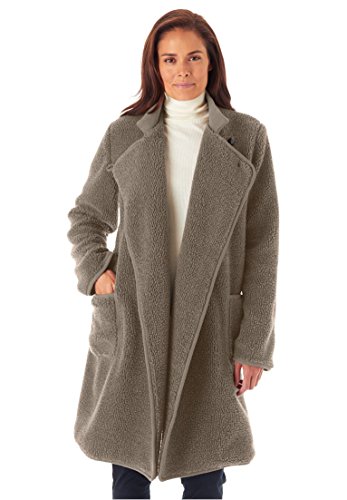 Studio : Woman Within Publisher : Woman Within Binding : Apparel Product Description This plus size berber knit rib trimmed jacket is utterly cozy and soft, and just about the best option for those fall days. It's full jersey knit lining helps in retaining warmth, while feeling absolutely cozy. relaxed, comfortable fit 36" length falls to just above the knees rib collar long sleeves with drop shoulder for an easy fit full jersey knit lining is warm and comfortable two handy front patch pockets front button-loop closure with inside snap soft, washable polyester/acrylic imported Women's plus size coat in sizes M(14W-16W), L(18W-20W), 1X(22W-24W), 2X(26W-28W), 3X(30W-32W), 4X(34W-36W), 5X(38W-40W) The Comfort FactorOur styles are designed with you in mind using plus size models to ensure sizing, proportions comfort. We've been refining our measurements for over 100 years so you can be confident the fit will be just right for you. 0