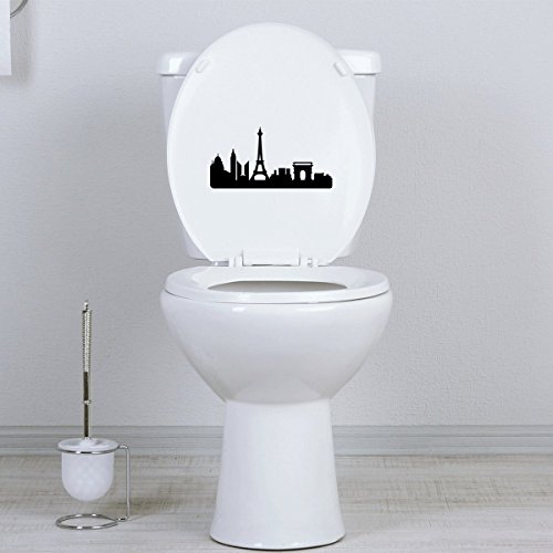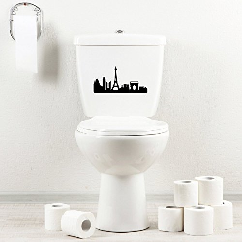 StickAny Bathroom Decal Series Paris Skyline 2 Sticker for Toilet Bowl, Bath, Seat (Black)