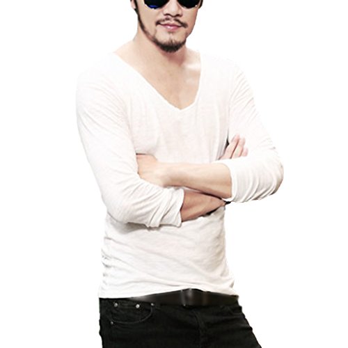 -. Binding : Apparel -. Brand : Zbrandy -. Department : mens -. Feature : Supersoft Fabric / Deep V Neck / Cut Off Border / Light And Breathable / Slim Fit -. ProductGroup : Apparel -. ProductTypeName : SHIRT -. Title : Zbrandy Men's Fitted Tops Scoop Neck Long Sleeve T Shirts With Cut Off Border