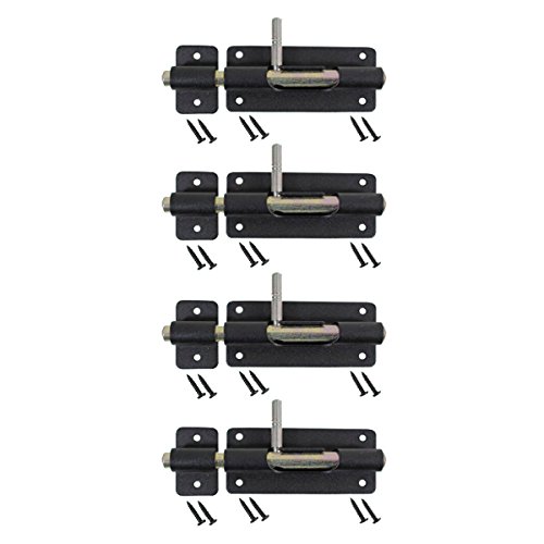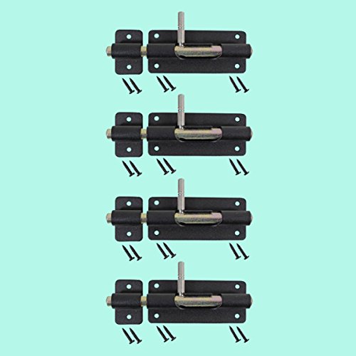 -. Feature : Black Wrought Iron Slide Bolts / 4.375in wide and 2in high / Rust-fighting RSF Finish / Mounting Hardware Include=d / Set of 4
