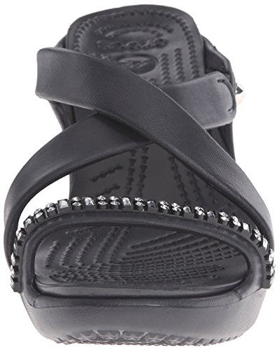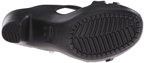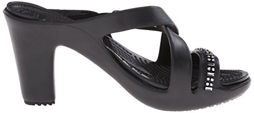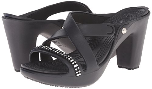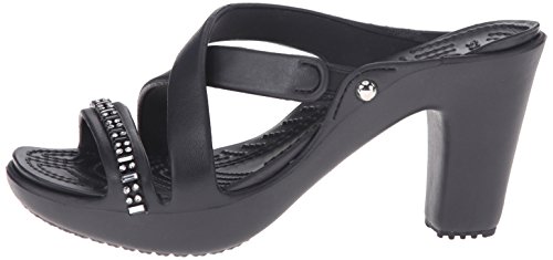 A strappy, stylish update to a crocs favorite, croslite material footbed cushions and comforts, sculpted heel with non- marking outsole, approximately 3.5- inches heel for a little liftFeature