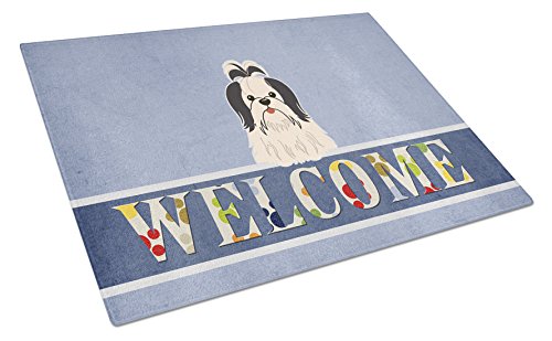 Caroline's Treasures Shih Tzu black White Welcome Glass Cutting Board Large, Multicolor