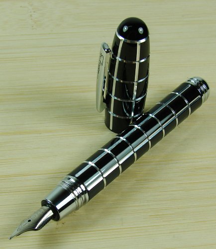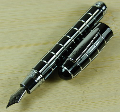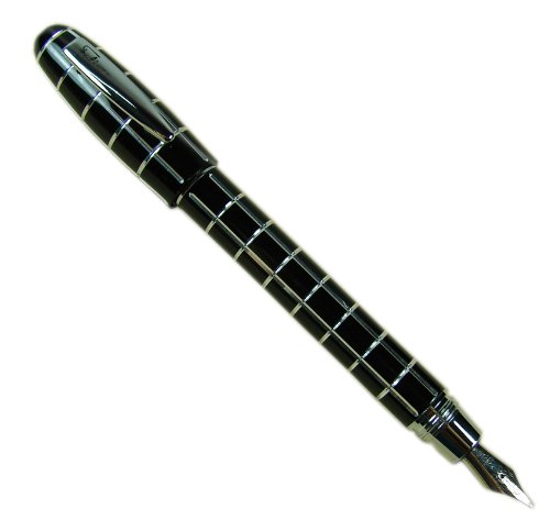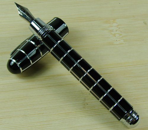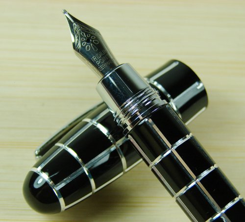 -. Title : Fuliwen Black Check Silver Line Resin Fountain Pen Fine Nib Size Black Color