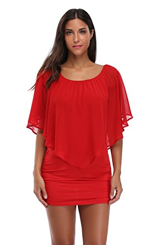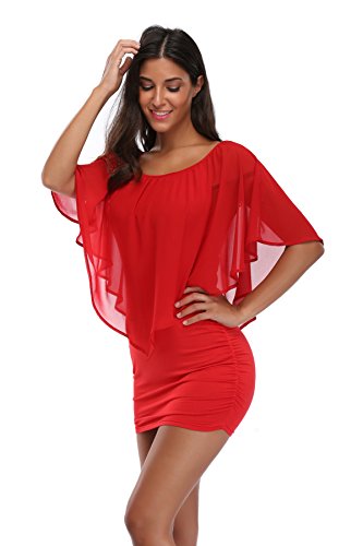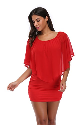 Bodycon dress features flowy ruffle made of chiffon, light-weight and sexy
