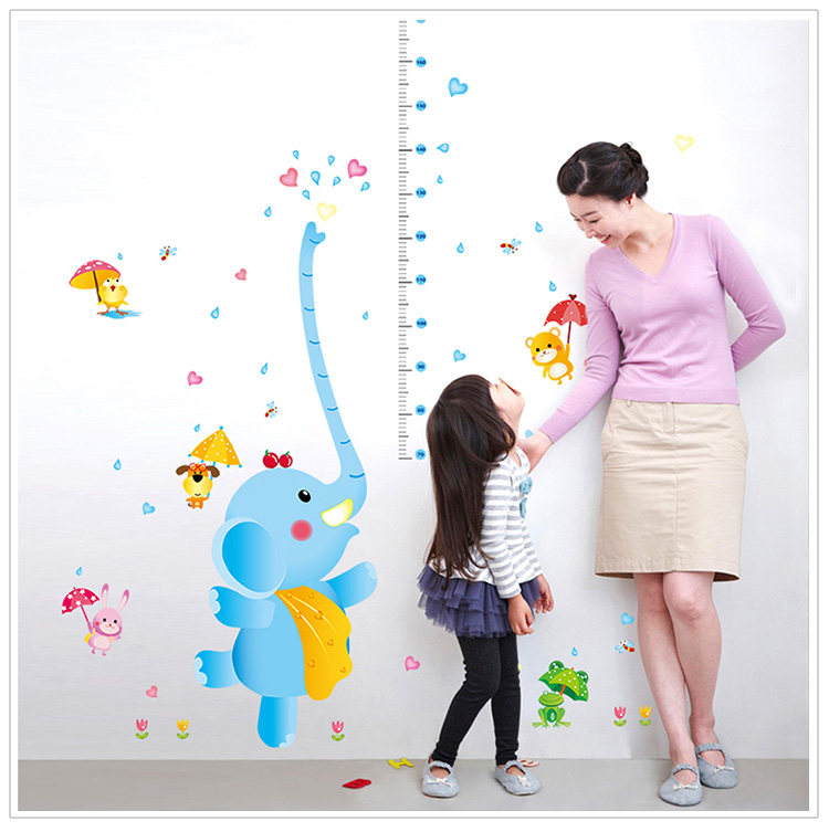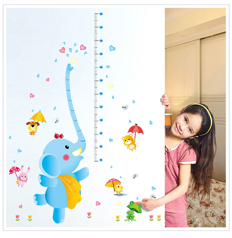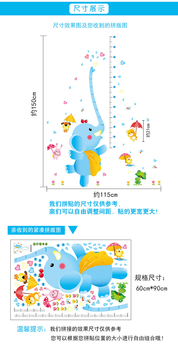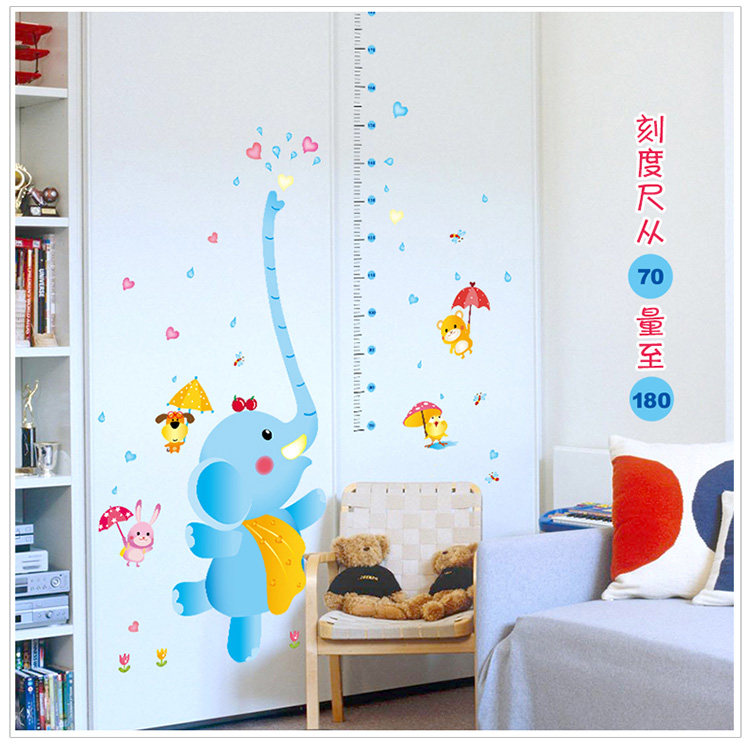 幼儿园墙壁装饰贴纸儿童房间卧室可移除墙贴画卡通大象量身高贴纸