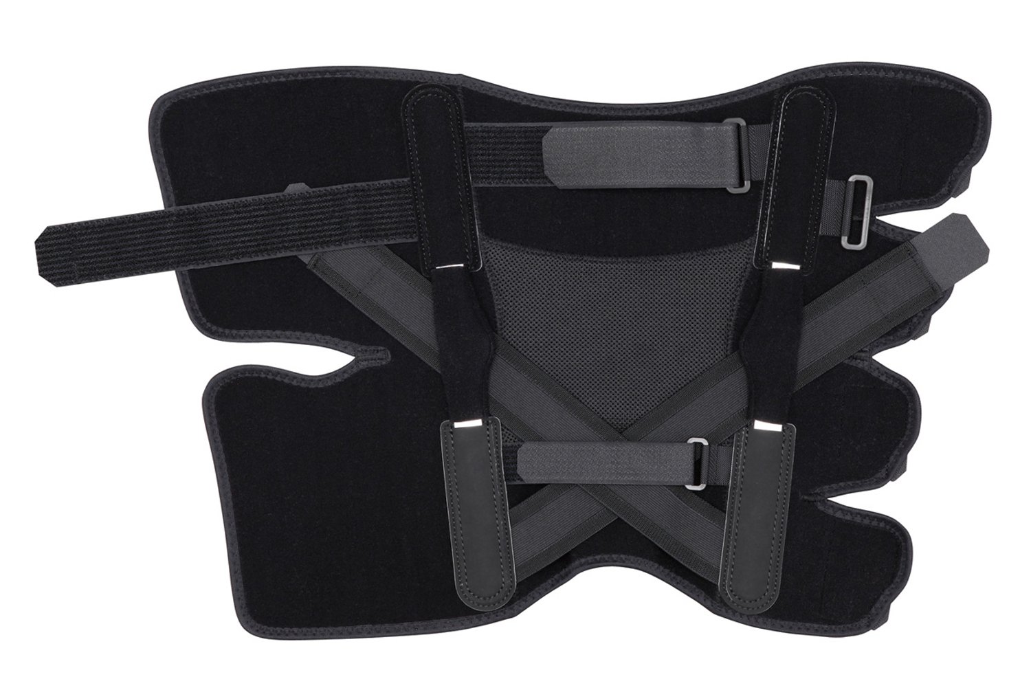 Cross belt, strap reduces backward and rotational instability.