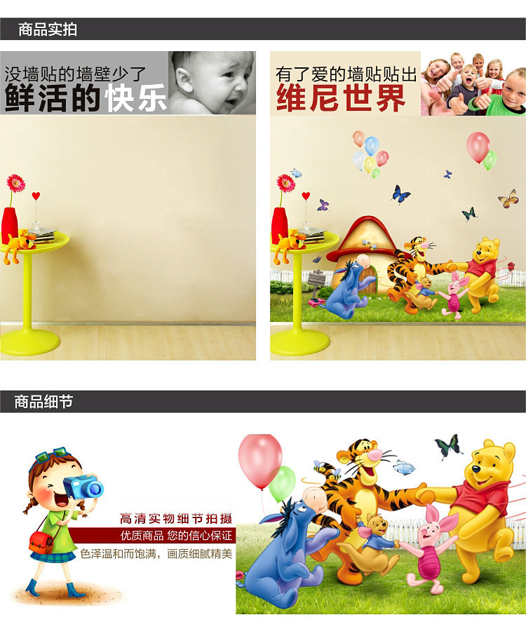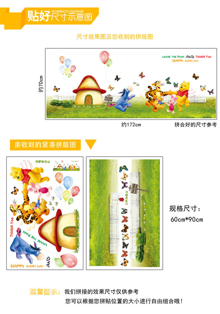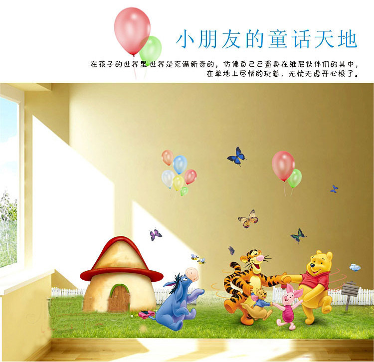 卡通动漫墙贴纸贴画儿童房间卧室幼儿园墙壁装饰超大踢脚线维尼熊