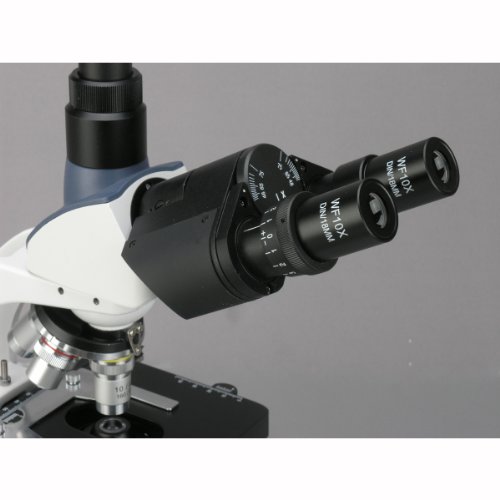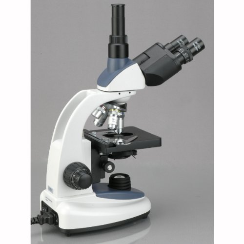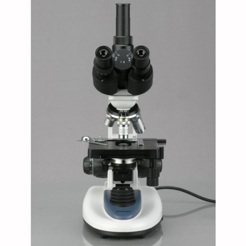 AmScope T380C-8M Digital Professional Compound Trinocular Microscope, 40X-2500X Magnification, WF10x and WF25x Eyepieces, Brightfield, LED Illumination, Abbe Condenser, Double-Layer Mechanical Stage, 85-265V Wide-Voltage Power Supply, Includes 8MP Camera