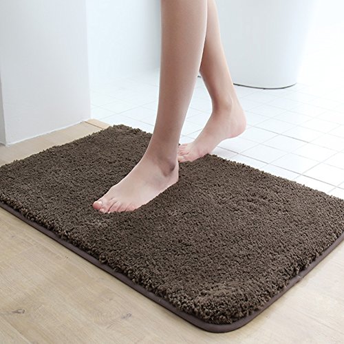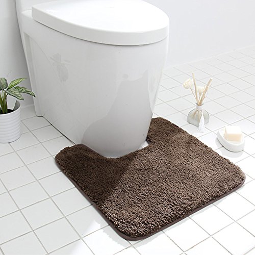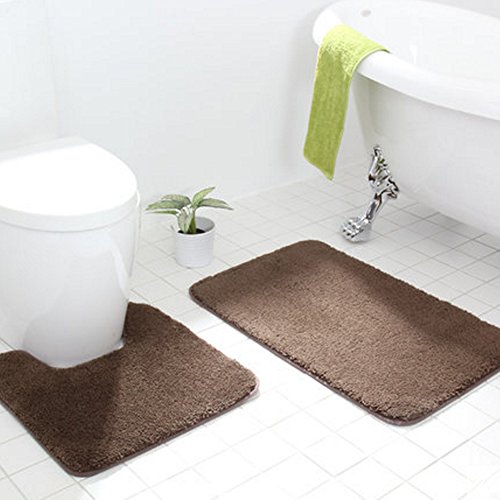 Ukeler Microfiber Non-skid Bathroom Contour Rugs, Set of 2 Soft Shaggy Non Slip Bath Shower Mat and U-shaped Toilet Floor Rugs, Coffee
