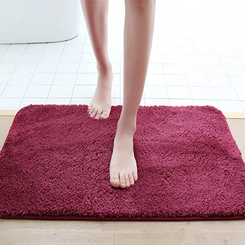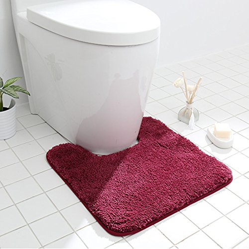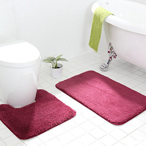 Ukeler Microfiber Non-skid Bathroom Contour Rugs, Set of 2 Soft Shaggy Non Slip Bath Shower Mat and U-shaped Toilet Floor Rugs, Burgundy