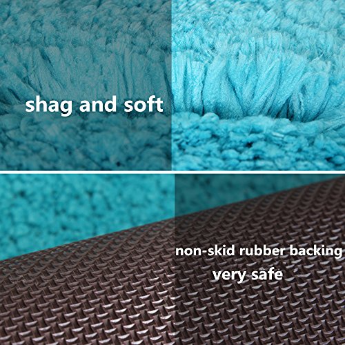Ukeler Microfiber Non-skid Bathroom Contour Rugs, Set of 2 Soft Shaggy Non Slip Bath Shower Mat and U-shaped Toilet Floor Rugs, Blue
