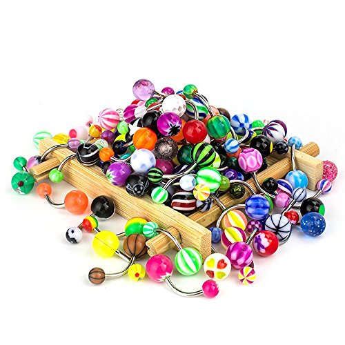 -. Feature : 100 mixed colorful uv ball belly piercing kit / 100% new brand Highest Quality, 316l Surgical Stainless Steel bar,double UV acrylic ball / Bar size:14g 7/16"(11mm), Ball diameter: 5mm / 8mm / sexy fashion Belly Ring Assorted Lot of 20 Banana Piercing 14G Belly Button Rings navel barbell body Piercing Jewelry kit