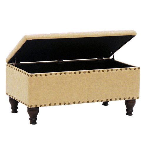 -. Title : Storage Bench Ottoman with Nailhead Trim and Decorative Turned Wooden Legs * Beautiful Piece for Your Bedroom/entryway/livingroom (Vanilla Beige)