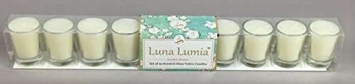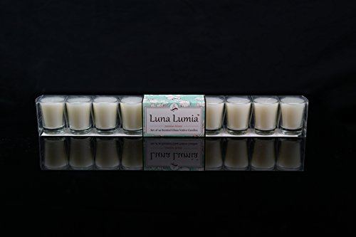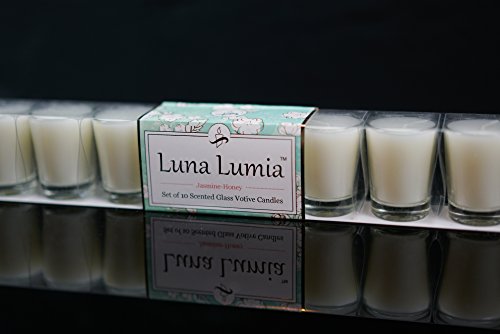 Vivre Royale TM #42-345-W Set of 10 Shot Glass Votives with Real Quality Wax, Scented, Jasmine Honey - V-Shape, White