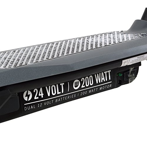 -. Feature : Twist throttle action with ITR (Instant Throttle Response) technology / 24-volt battery system with a ride time of up to 40 minutes / 200-watt chain driven motor with speeds up to 13 MPH / Single piece in-mold CDT (Composite Deck Texture) surfaced deck