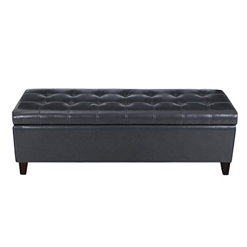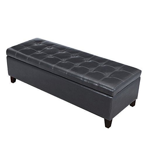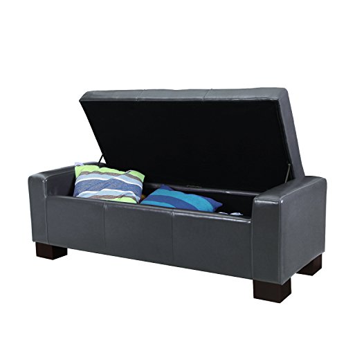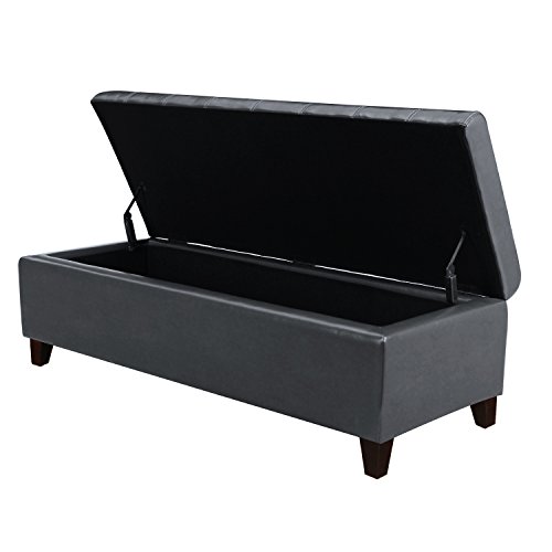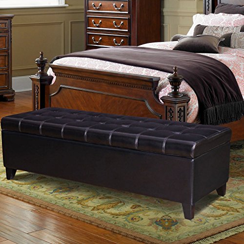 -. Feature : Materials: Bonded leather/ dark, chocolate brown / Dimensions: 51x19x16" / Whole cover can be removable / Large interior storage space / Wooden Legs with Plastic Tips to protect floors, assembly required.