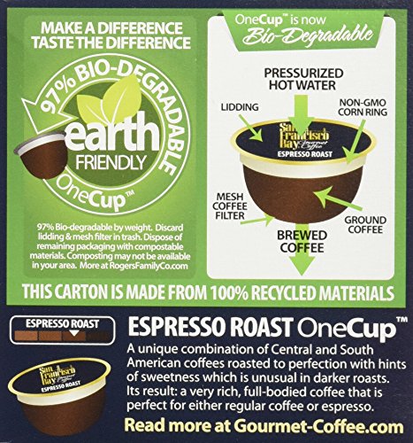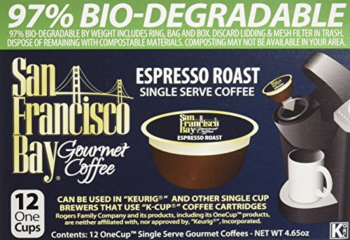 Are you looking for delicious, gourmet coffee available in a wide selection and at great value? Then "San Francisco Bay Coffee" is for you. We've developed a line of unique custom blends, exotic regional coffees, and single estate coffees available in 12 ounce and 2 pound bags. All are environmentally and socially responsible gourmet coffee offered at the best possible prices. We stand for premium, sustainable, fair and direct trade coffee and tea at prices you'll love. We like to say our products are grown for good. Our Community Aid Program has restored thousands of acres of rainforest by farming only with shade grown farms, and planted our own coffee on our own organic farms. Our One Cup single serve coffees are compatible with Keurig K-Cup brewers and other brands of single serve brewers.Feature