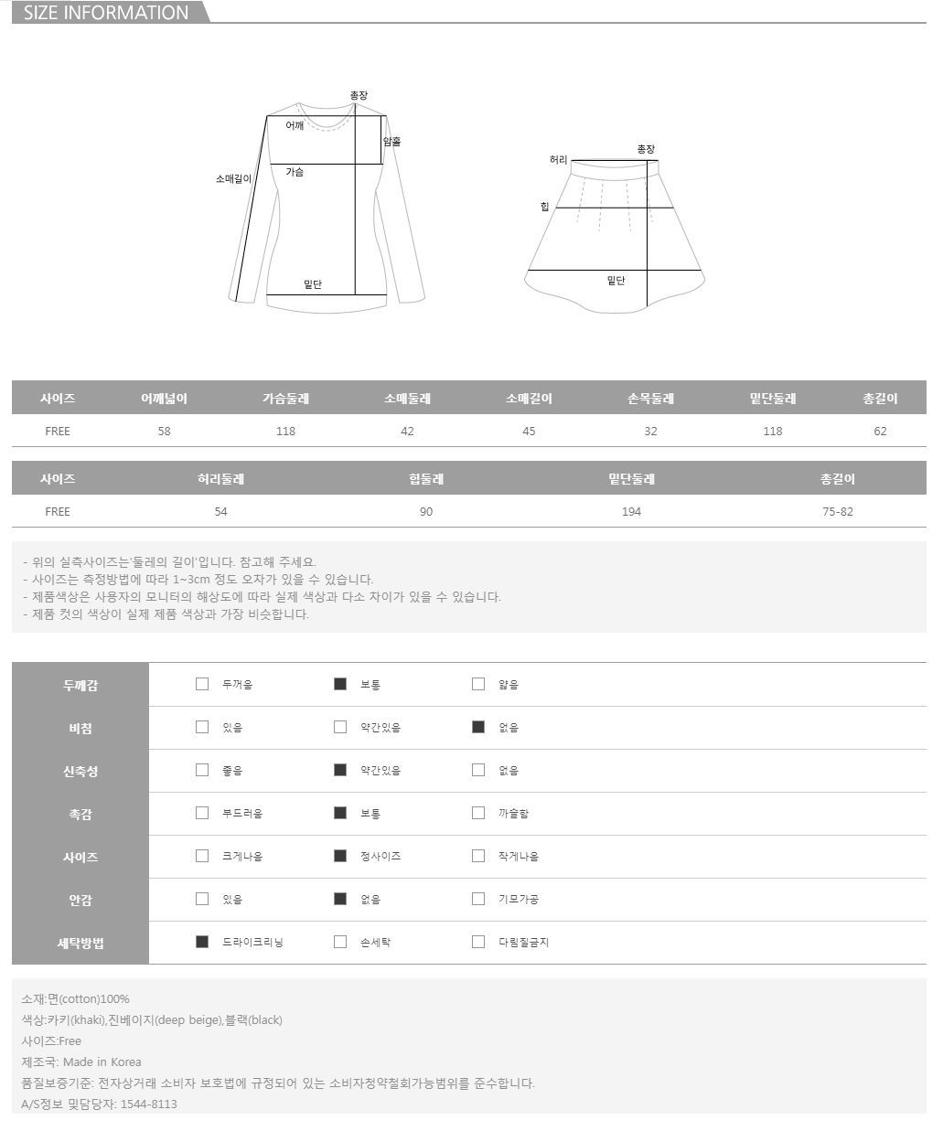 모델의 착용 컬러는 카키 입니다.
