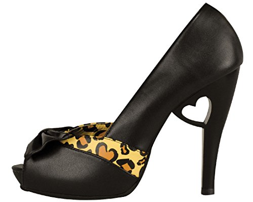 Studio : T.U.K. Publisher : T.U.K. Binding : Apparel Product Description Last few left! Get them before they're gone for good! Fall through the rabbit hole and make your fantasy world come true with these almost 5 inch heart cut out d'orsay platforms from our ‘Queen of Hearts' collection. These T.U.K. d'orsay platforms feature black man made leather with cheetah heart toe accents and a black bow. 0