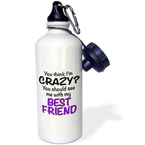 3dRose wb_163921_1 You Think Im Crazy You Should See Me with My Best Friend, Purple Sports Water Bottle, 21 oz, White